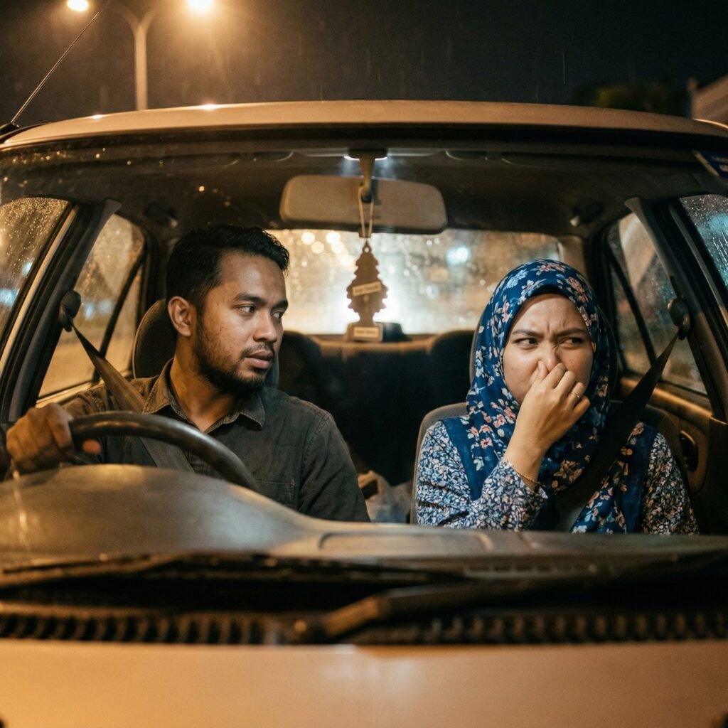 ❌ Bila travel jauh, anak-anak makan keropok dan sampah bertaburan di tempat duduk belakang.